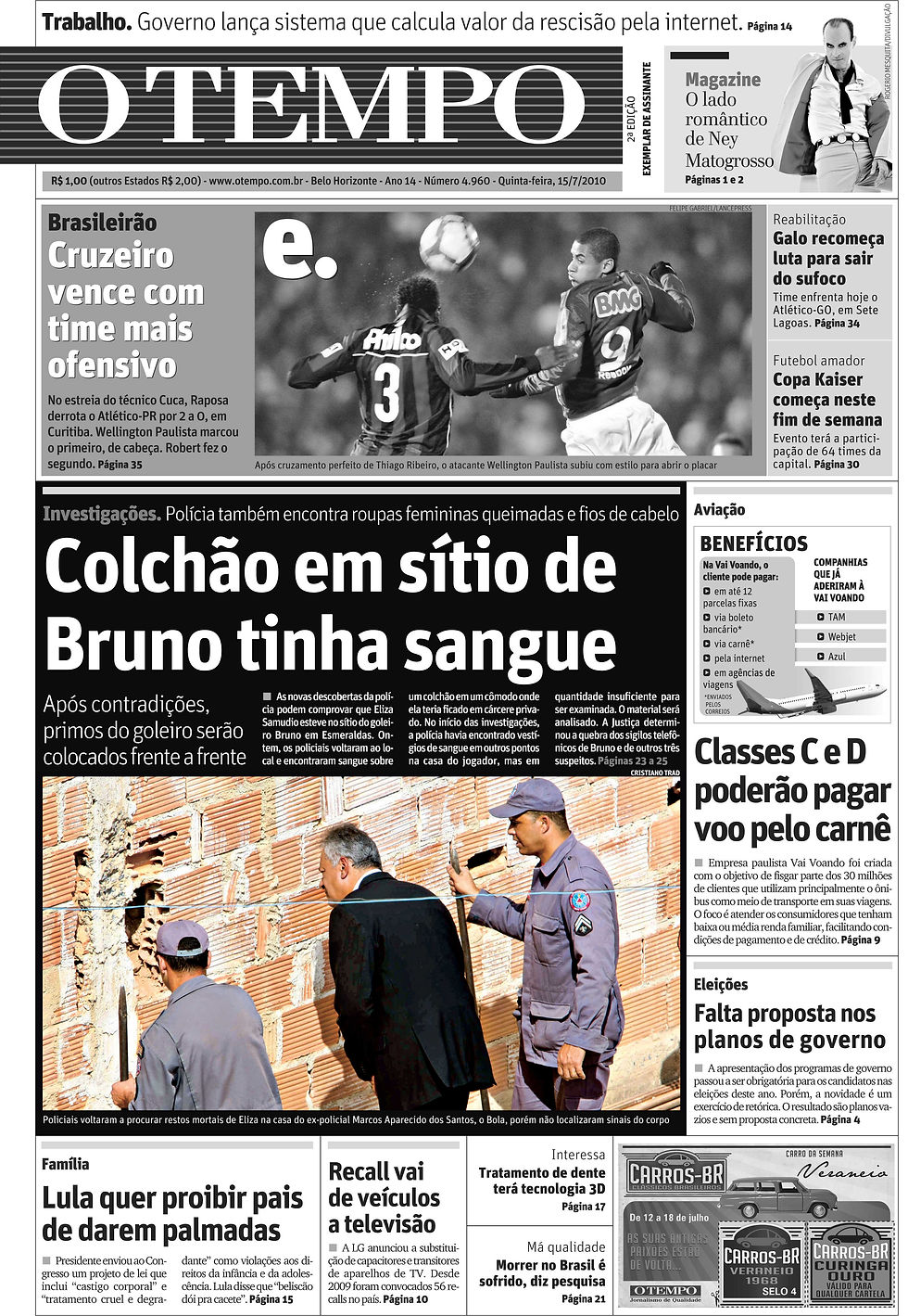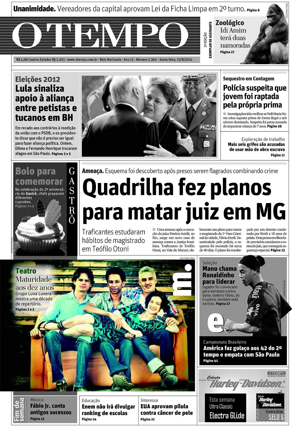ALGUMAS CAPAS DOS JORNAIS OTEMPO / SUPERNOTÍCIA / PAMPULHA